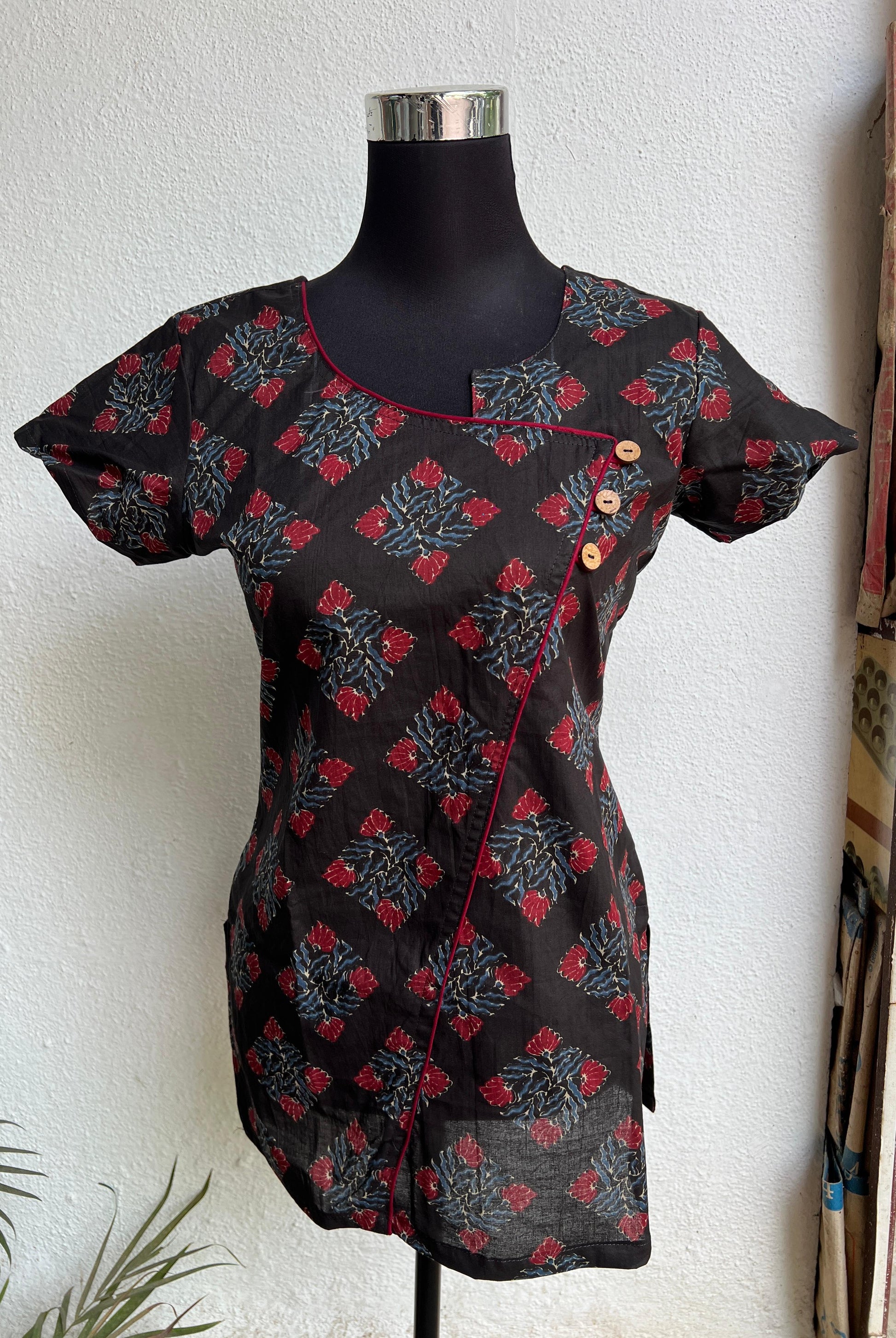 Women's Distinctive geometric and symmetrical print in black and red Tunic Top / Short Top /Short Kurti